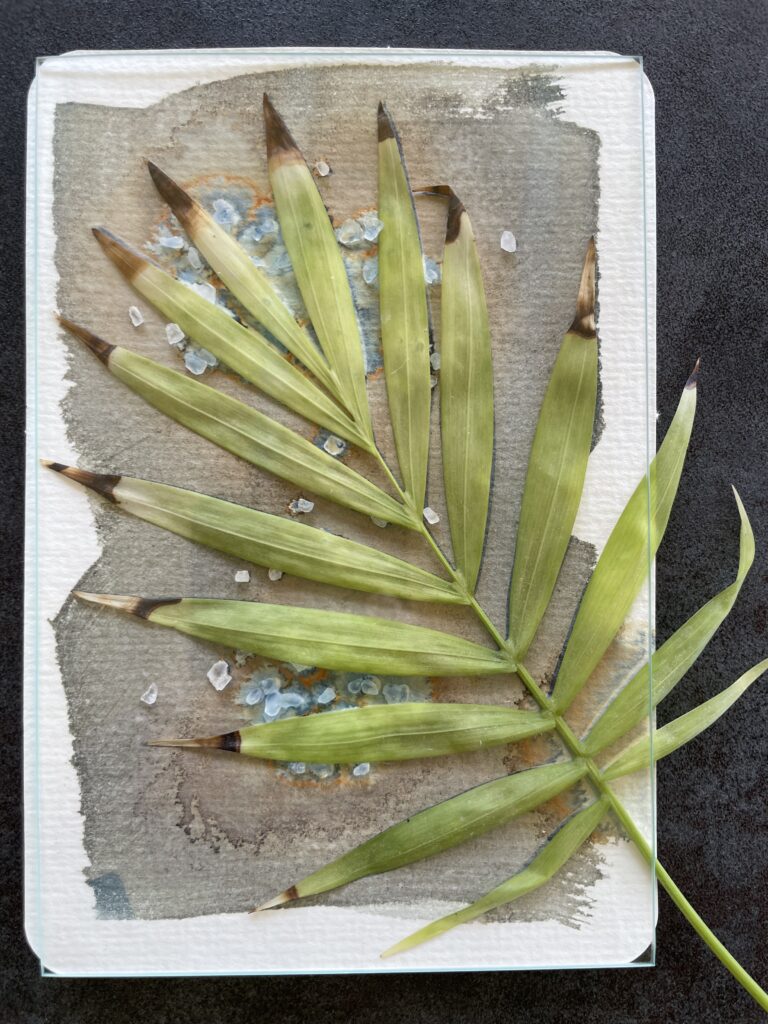I have made a few cyanotype prints over the last week using mostly botanical objects, and experimented with the addition of bubbles and sea salt crystals to see their effects during exposure. I feel like there is a lot more I want to explore and experiment with this method of printing.